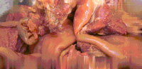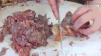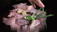 一是“解驴”。一位好的庖丁,需要学三年才能熟练找到刀口。驴肉是珍贵的,不能浪费一丝一缕,所分割驴肉,不是一刀下去,而是随着肌理不停拐弯。那一层薄薄的“白膜”必须保留,它是保证驴肉不烂不散的“守护神”。