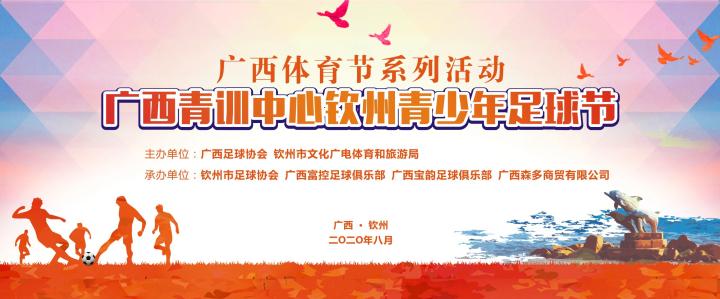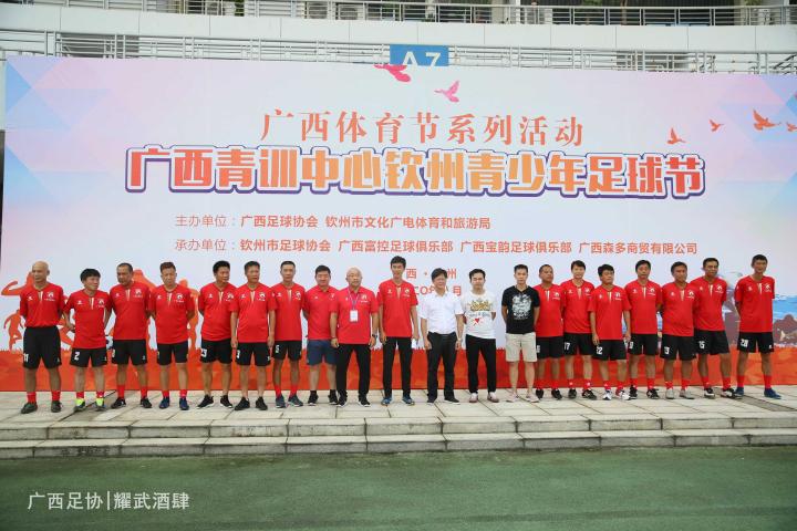 广西青训中心钦州青少年足球节由广西足球协会、钦州市文化广电体育和旅游局主办,钦州市足球协会、广西富控足球俱乐部、广西宝韵足球俱乐部、广西森多商贸有限公司承办,活动为期两天,开设了“青少年足球公益活动、明星教练钦州对抗赛、明星教练员基层授课”三大活动。