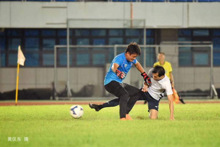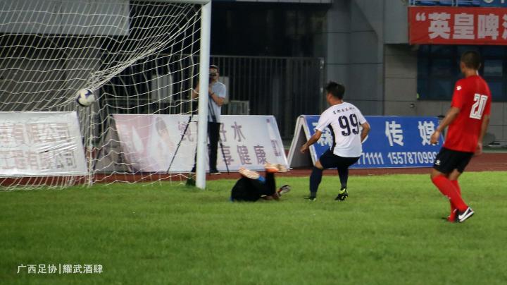 比赛第二节,钦州政府联队暗暗发力,调整策略,在面对如此强劲、极富经验的对手和稍微落后的比分也毫不气馁,第45分钟,7号陈仁意助攻99号颜伟波攻门得分,1:2,第50分钟,陈仁意禁区内晃开防守攻门得分,2:2!钦州政府联队迎头赶上,扳平比分,“好球!”现场观众也不由得发出阵阵呐喊。