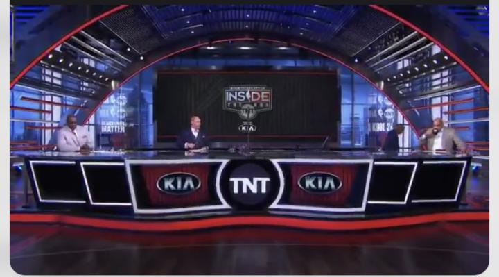 ▲TNT球评肯尼·史密斯摘掉麦克风离开演播室,支持球员罢赛。