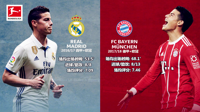 不甘于在皇马沉沦,J罗在2017夏窗接受恩师安切洛蒂邀请,前往德甲寻求挑战。由于新时代优秀的前场爆点型球员十分稀缺且普遍身价奇高,拜仁很难以理想的价格购进高水平边锋,彼时的罗贝里组合尚能支撑一两个赛季,德甲巨人选择优先进补中场球员来实现战术升级。较之同时期加盟的鲁迪和托利索,履历辉煌且又是安帅“自己人”的J罗承载了更多的期待。