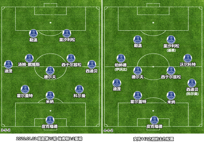 (图)三中卫体系试验不甚成功,安切洛蒂迅速祭出了自己最擅长的442体系,埃弗顿的打法稳定下来。