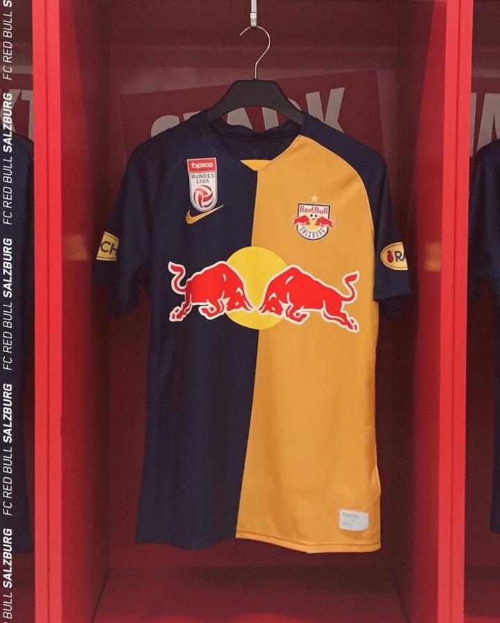 样式简约V领内加入展现自豪感与团结精神的口号“Des is Soizburg”。萨尔茨堡红牛全新客场球衣采用黄色球裤与深蓝色球袜的搭配。球衣使用耐克闻名遐迩的Dri-Fit球衣科技,出色的透气排汗性能确保球员在整场比赛里身体始终保持干爽。