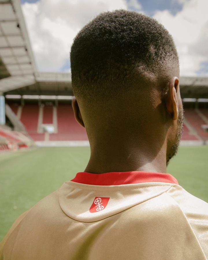 与先前发布的两件旨在突出俱乐部形象的球衣不同,这件全新第二客场球衣重在歌颂历史上有着“黄金城”美誉的这座城市。新球衣以闪耀夺目的金色作为主色,衣领与袖口上加入代表俱乐部的红色细节,而作为城市象征的双轮纹章同样出现在球衣背后衣领下方。