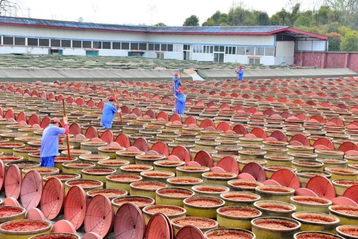下图,传统郫县豆瓣酱的制作。