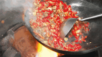 歌乐山辣子鸡,边炒边加入油炸过的二荆条辣椒。
