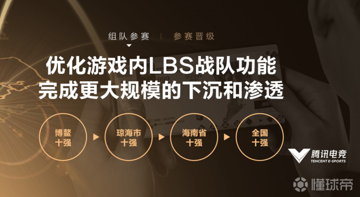 线上赛、城市赛和第三方赛事是金字塔的塔基。为了激活大众的参与度。今年王者荣耀优化了LBS战队功能,玩家能以地理为单位完成组队和晋级,晋级规则上单场选拔赛改为月赛,并且加入活跃向积分,来降低赛事偶然性。
