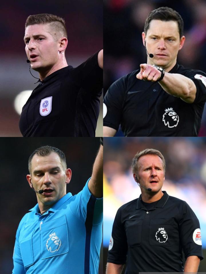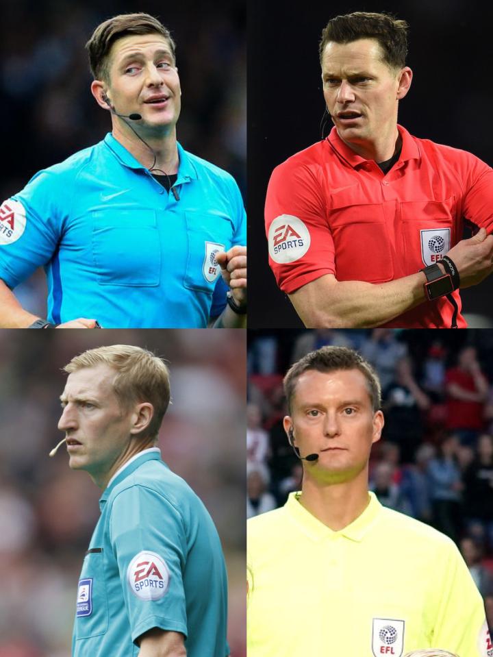 (图) 四位获得英超执法机会的英冠裁判员(上排从左至右:琼斯、英格兰;下排从左至右:鲁宾逊、兰福德)