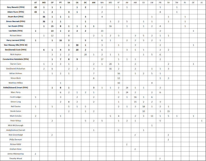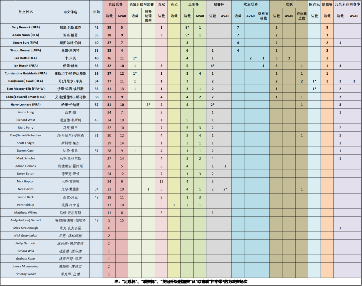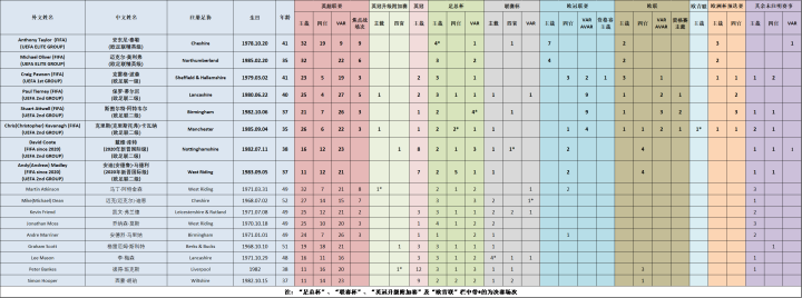 (图) 英格兰国际级裁判员国际赛事执法场次