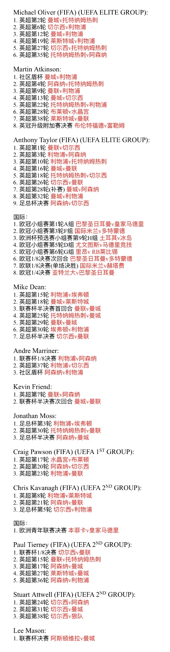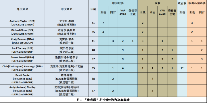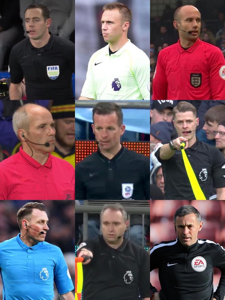 (图) 有机会执法焦点战的11位裁判员(梅森仅执法了联赛杯决赛,未执法其他任何焦点战,故不算在内)