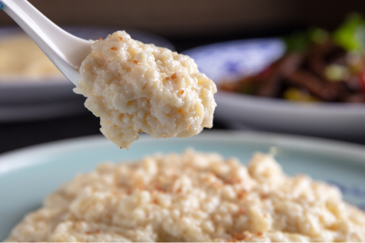 看上去色白似雪,吃起来细腻软嫩,口齿间尽是软乎乎、香滑滑的绵顺。