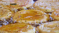 红彤彤的油锅中上下翻滚,随后在油碟中沾满香油,向嘴里一放。