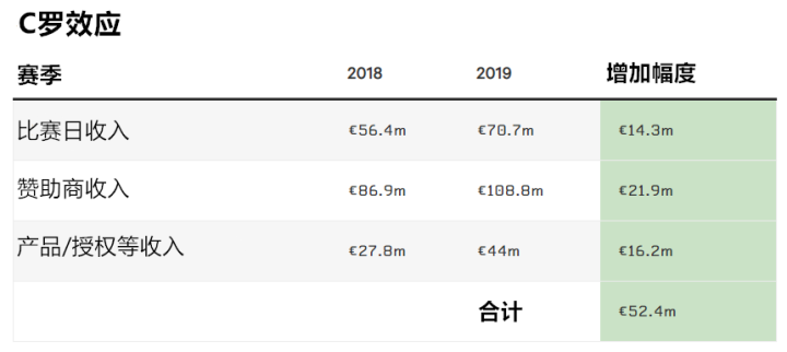 在“C罗效应”的统计中还没有计入转播、商业收入等,而这些因素也会有助于抵消签约梅西所带来的成本压力。