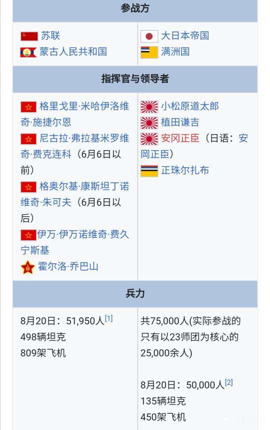 诺门罕战役(苏联与蒙古称“哈拉哈河战役”、“哈拉...Rankovic @懂球帝2020-09-03 09:59诺门罕战役(苏联与蒙古称“哈拉哈河战役”、“哈拉欣河战役”,俄语:Бои на Халхин-Голе,日本称“诺门罕事件”,日语:ノモンハン事件)是日本及苏联在远东发生的一场战争。日本称1939年5月11日至6月上旬的事件为第1次诺门罕事件,此后至1939年9月16日停火为止,称为第2次诺门罕事件。苏方主将为朱可夫、日方主将则为小松原道太郎。展开更多