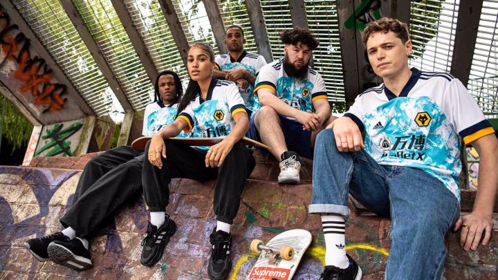 与充满经典风格的新赛季主场球衣相比,阿迪达斯为狼队打造的这件全新客场球衣更具街头风范。新球衣型录的拍摄也选择在街头滑板场地。
