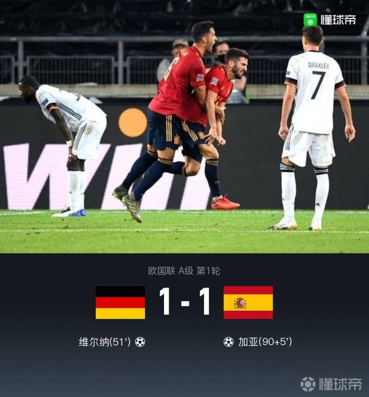 【德国1-1西班牙,加亚读秒绝平,维尔纳破门,罗德里戈失空门】