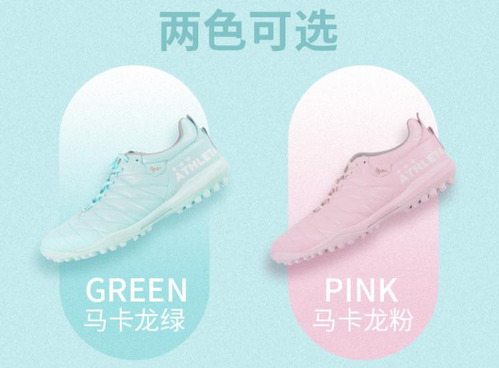 2.0球鞋在规划的时候颜色选择方面做了很多的意向调查,在一代中已经覆盖了黑白橙红等常规配色,所以2.0还是想做出在球场上更加吸引目光的球鞋,加之目前各个品牌的常规鞋款中并没有这种很清新的粉和绿色让朋友们选择,所以我们决定阿仕利塔2.0TF首发马卡龙配色系列。