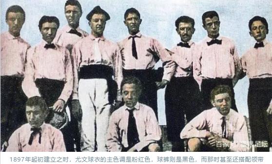 受意大利上上世纪90年代初纺织技术的限制,尤文图斯俱乐部成立时的队服是浅红色的,很容易与AC米兰等队混淆。由于很难找到合适的球衣,他们一开始穿着的是带有领结的粉红色上衣以及黑色高尔夫长裤。