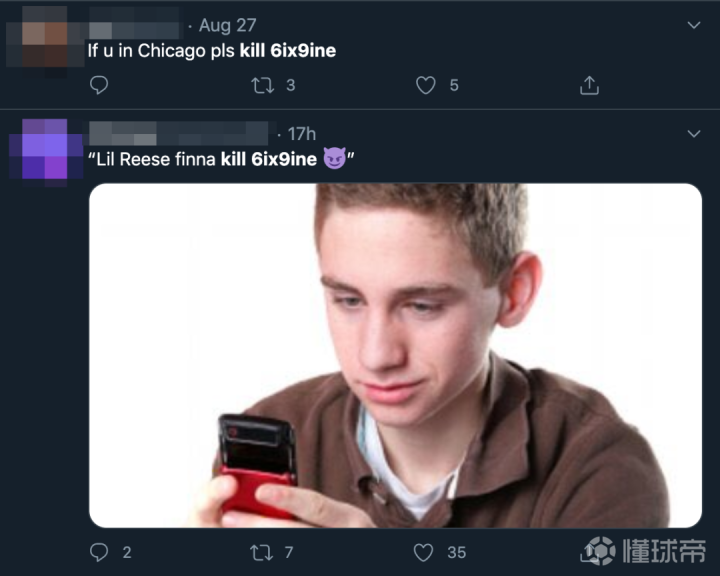 在推特搜索“Kill 6ix9ine”,就能看到大批和他有仇的网民们。