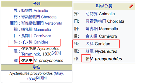 日本的狸所指代的生物并不是 「狸猫」,而是另一种生物——貉,属犬科。