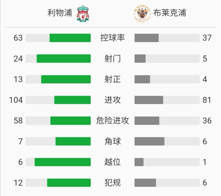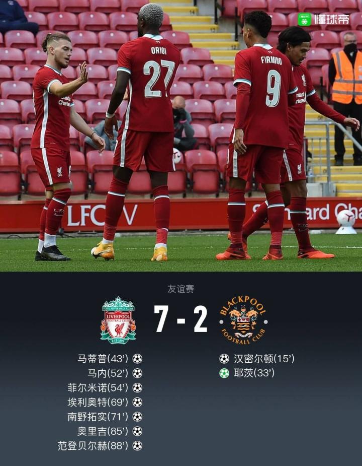 全场比赛结束,利物浦7-2逆转布莱克浦。