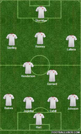 在英格兰队中,他很可能在左路获得一个位置来补充前场的攻击力,而且他也可以回撤帮助球队防守。本赛季他有10次首发是在左边路活动的,但是他也被摆放在不同的进攻支持者的位置上。英格兰队内并不具备一名能纠缠对手,能进球,还能控球和创造机会的球员。他的天赋和灵巧让他成为了国家队中的稀有物种。照这样说的话,他肯定会跟随球队前往巴西。作为联赛中表现最为出色的英格兰球员之一,他应该得到一个首发位置。在4-2-3-1的阵式中,他或许可以在右边路大有作为: