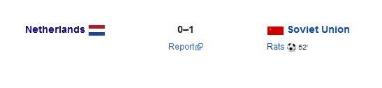 然而小组赛首战苏联,由于头号前锋范巴斯滕的缺阵,荷兰在进攻端失去了魔力,在52分钟被拉茨攻破球门后憾负于随后决赛的对手。
