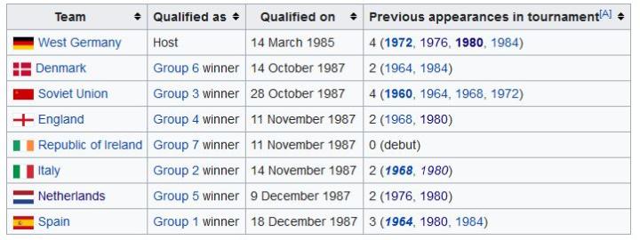 赛事最后两场比赛中,荷兰首先以2-1战胜另一小组的头名,东道主,同时也是荷兰在欧洲足坛长期以来的宿敌德国(彼时我们仍应称之为西德),挺进决赛;在随后的决赛场上,又是凭借队长古利特的头球以及范巴斯滕的神来之笔实现了对小组赛首战的复仇。