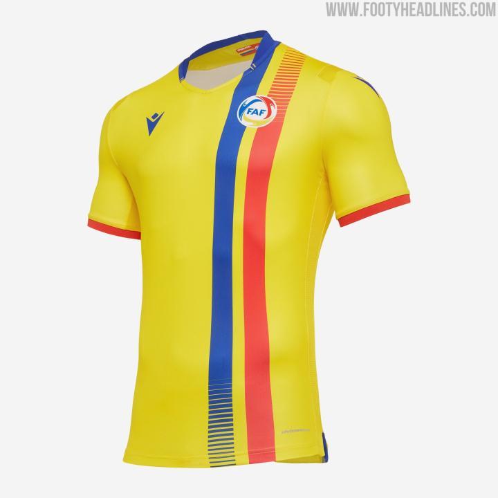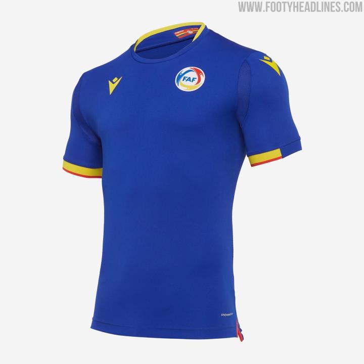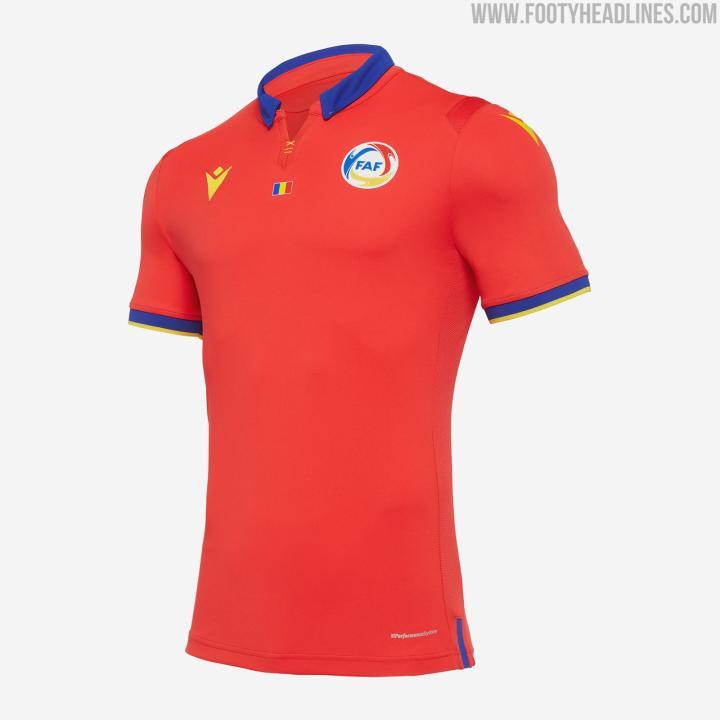 Macron为安道尔打造的20-21主场球衣采用了比较干净简洁的设计,传统的红色配以复古风格的衣领,蓝色、黄色在于袖口、领口以及品牌logo处用以点缀。客场球衣则是醒目的蓝色作为主色调,圆领以及Macron品牌标识采用黄色,同样袖口采用了红黄色的条纹设计。而第三球衣同样是红、黄、蓝三色进行搭配,不过这次的主色调变成了黄色,设计上也不像主客场球衣那么单调,球衣正面有着两条红蓝色条纹,并且还在有着渐变处理。