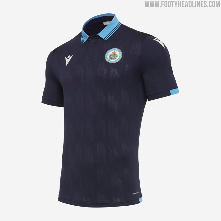 Macron为圣马力诺打造的主场球衣灵感来源于上世纪90年代,主要色彩为天蓝色,传统的翻领设计配以正面提花图案,客场球衣基于相同的模板,以深蓝色为主,采用了另外一种提花图案。