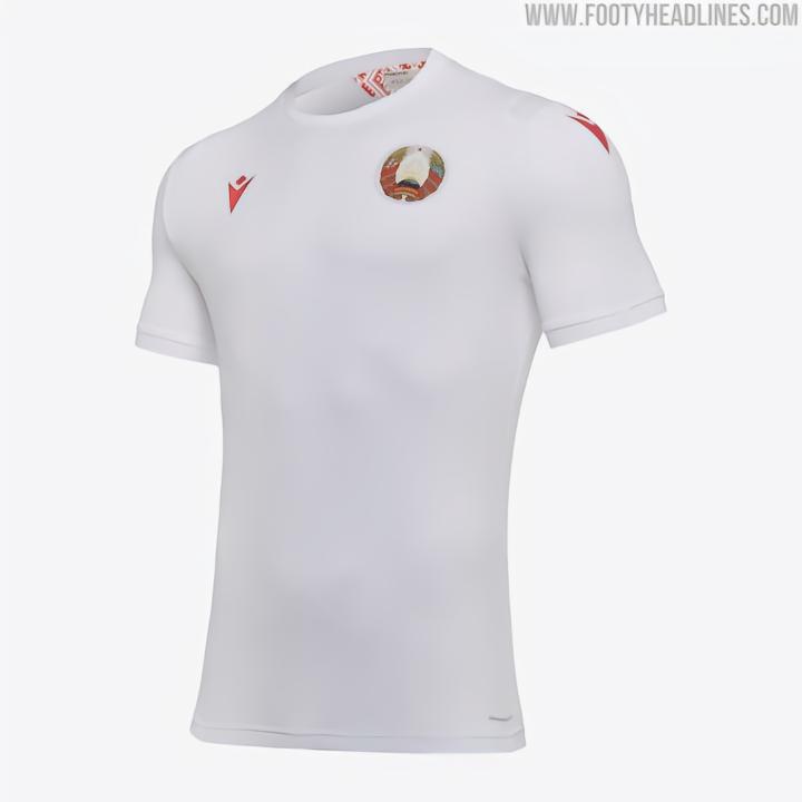 Macron为白俄罗斯打造的主场球衣采用了白色的简洁设计,搭配圆领以及红色品牌logo。客场红色球衣配以经典的polo领,正面中央有一条暗纹图案。