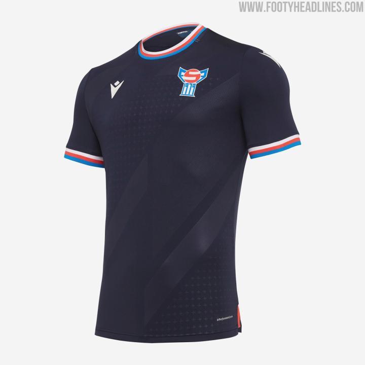 法罗群岛的主场球衣以白色为主,领口袖口配以红蓝条纹饰边。客场球衣则是海军蓝色,正面有着斜条纹以及点状暗纹。