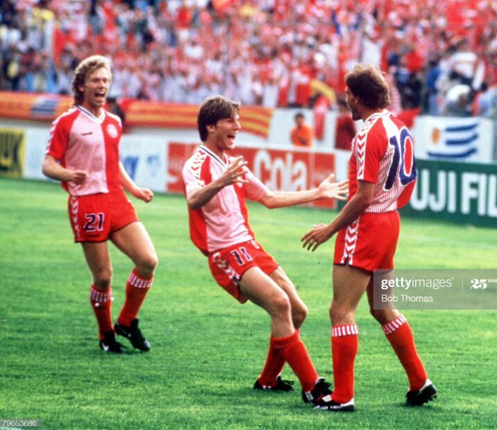 1984年,丹麦队杀入欧锦赛正赛,并且最终获得了第三名,丹麦足球也迎来了历史的高峰,两年后的墨西哥世界杯,hummel迎来了最大的机遇,他们将直面全世界球迷。所以hummel的设计师挖空心思,设计出了一套非常花哨的球衣。据说当时由于黑白电视机转播,丹麦的球衣让很多球迷都成了色盲,差点因此被国际足联给禁赛,hummel公司只能在最后时刻只能将原来的主场球裤换给了客场,客场球裤换给了主场,这样才勉强通过了国际足联的审核。当时hummel的球鞋也出现在了丹麦队中,并且逐步成为主流。