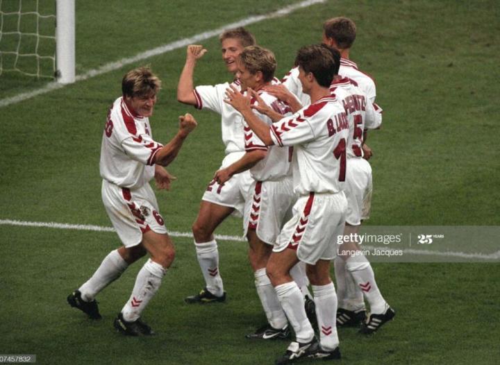 但是hummel品牌最高光的表现还是1992年欧锦赛,当时没有大劳德鲁普的丹麦队,在小劳的带领下,创造丹麦童话,一举获得了欧锦赛冠军。hummel品牌从此也是享誉全球,当时球队中,舒梅切尔,队长尼尔森,延森等球员,使用的球鞋也都是hummel的。不过这可能也是hummel球鞋最后一次在国际足坛大露脸,俗话说枪打出头鸟,你获得了冠军以后,就被大品牌钉上了。