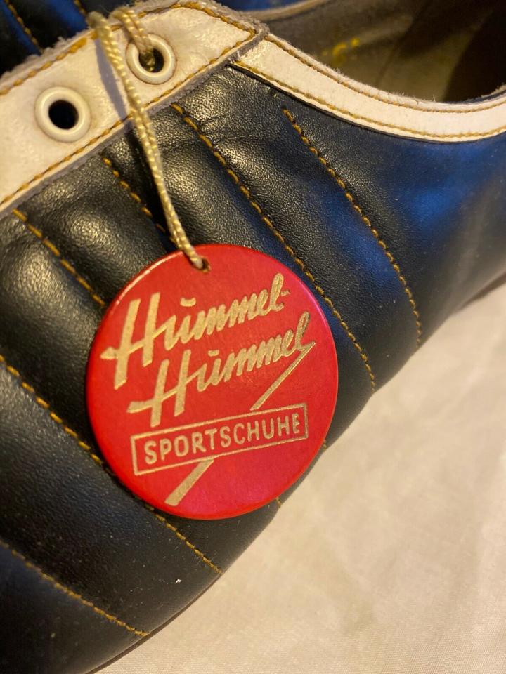 这个故事的真实性无从考证,我们只能当个故事听过。但是据说这种带鞋钉的球鞋在当时被不少运动员认可,所以阿尔伯特和他哥哥在汉堡创建了一家制鞋公司,当时这家公司的名字就以messemer命名。但是在经历了漫长的第二次世界大战后,messemer公司并没有得到大踏步的发展,还是一家名不见经传的家族小企业。而德国达斯勒兄弟的adidas和puma品牌却早已风生水起。1956年,一名德国商人伯恩哈德·韦克布鲁克看到了足球运动的发展机遇,所以收购了messemer兄弟的公司,并且将公司的名字改为hummel,这个词在德语中是大黄蜂的意思,当时hummel品牌还没有双箭头logo。