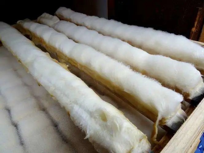 鲜豆腐制成后,加入霉菌形成的可食用菌丝,随着时间的发酵,菌丝便慢慢成绒。