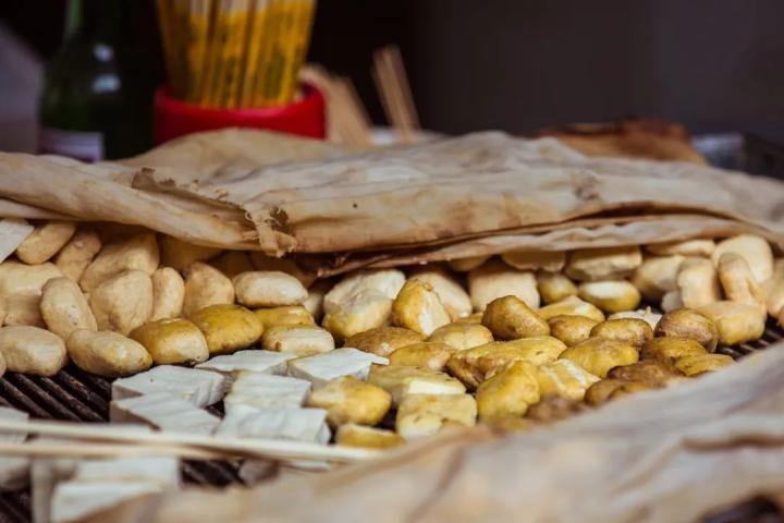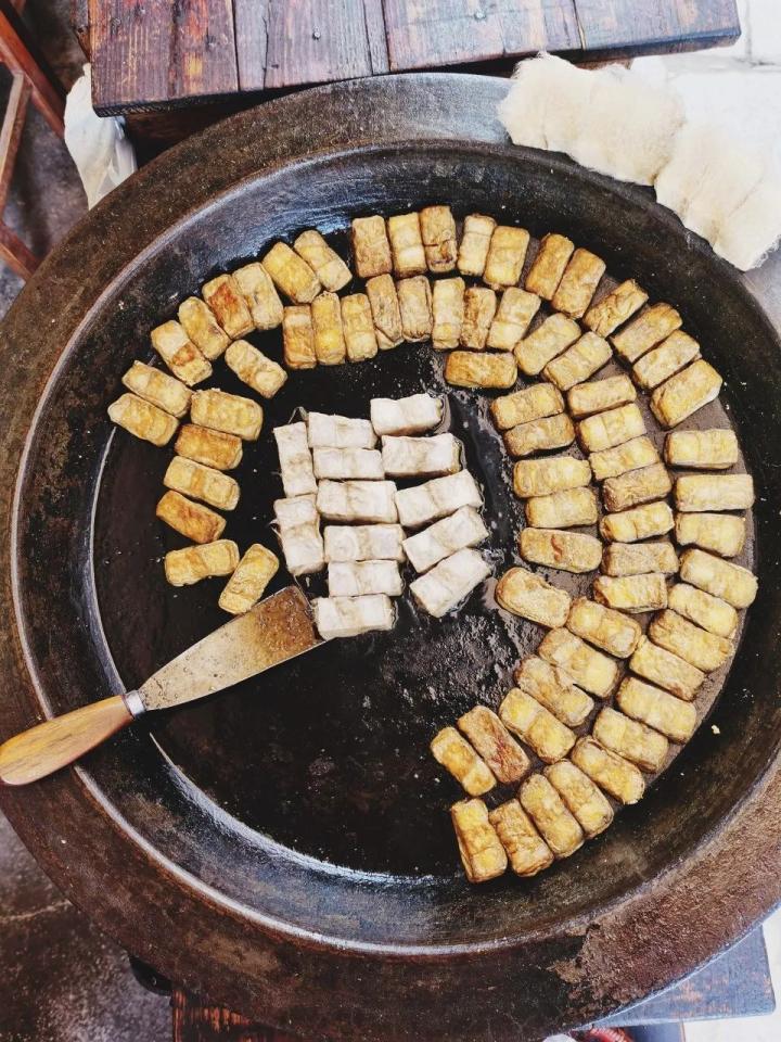 石屏豆腐极富韧性、豆香浓郁。用来油炸或者串起来烤,最好不过了。