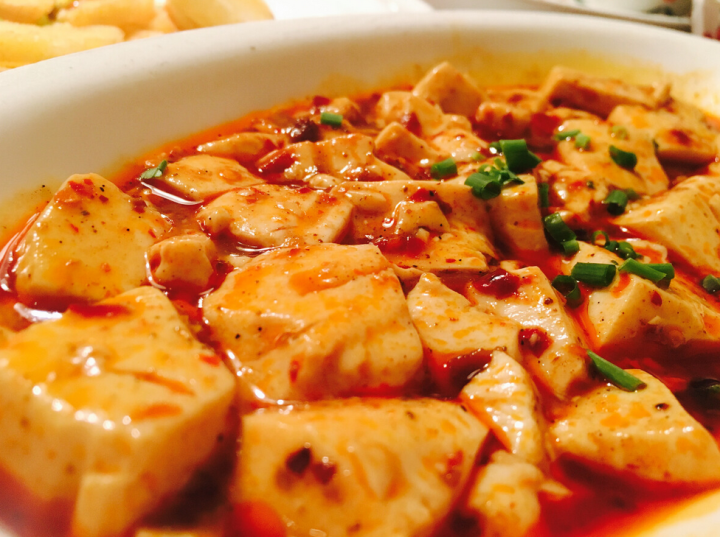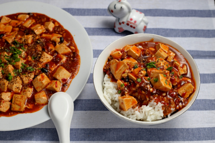 通红的麻婆豆腐视觉上让人热血喷张,味觉上又让人胃口大开。