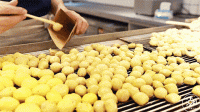 薯粉,让豆腐表面更酥脆,还能保证里头的豆腐依旧软嫩;水,选用普宁周边重碱轻酸质地的水,做出来的豆腐,口感更清爽。