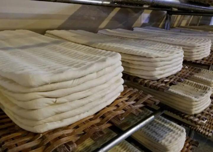 经过大板井井水的洗礼,再用小块纱布包好,放到特别的木板上挤出水分,最后撒盐暴晒。