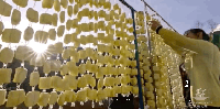 金灿灿挂着卖的黄豆腐,成为了小镇上独特的一景:
