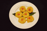 用豆腐包裹着凤尾虾,再挂糊下油锅,凤尾虾尾红身黄,外形像个爆竹,一口咬下去,简直不敢相信,那豆腐层竟然比虾肉还鲜嫩。