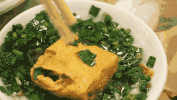 都说心急吃不了热豆腐,酿豆腐还真是还要趁热吃,出锅后撒上葱粒加以点缀,蘸上酱料即可开吃。