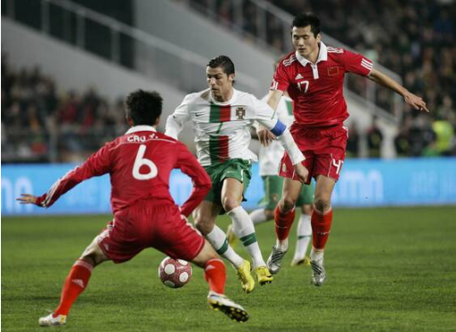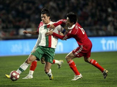 本场比赛,国足首发后卫是荣昊、杜威、汪强和曹阳,还有张琳芃、郑智两名后腰,高洪波显然做好充足的防守准备,给葡萄牙队来了一次中国式大巴的防守阵容。这个阵容对于当时已经在皇马意气风发的C罗来说,无疑是特别定制、量身定做的防守套路。以十年前的眼光看,这场比赛国足输得还算有颜面,90分钟之内只被C罗领衔的葡萄牙打进1球,直到补时第4分钟,穆蒂尼奥的远射发生折射之后,才攻破了张鹭的球门。