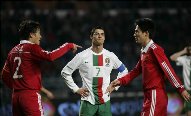 C罗职业生涯能与中国足球挂钩的故事并不多见,更多时候,中国喜欢他的球迷都是在西甲、意甲、欧冠、欧洲杯和世界杯等重磅赛事欣赏他的表演。对于C罗来说,中国足球的记忆恐怕只有代表皇家马德里和尤文图斯参加的商业比赛和意大利超级杯。不过有一点可以确认,在国际比赛,C罗从未攻破过国足的球门,这是事实。而这个事实也并非建立在国足没有与葡萄牙队交手的基础上,并非是江湖流传的一个段子。