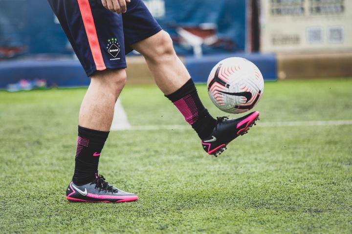 同时,鞋面GT摩擦颗粒在传、停、带、射时起到很好的辅助效果,停球、带球时能感受到来自鞋面的摩擦,对球的控制感非常明显。而对于射门来说,鞋面辅助肯定是不如Phantom VNM那么明显的,但是摩擦颗粒必然会起作用,而且轻薄的鞋面加上不错的包裹感,让双脚的自然发力非常充分,触球真实 、部位吃的比较准。综合来看,整个鞋面的设计还是更适合传控型球员,前锋们是否满意得试过才知道。最后呢,鞋面的GT摩擦颗粒耐久度是非常好的,不会掉,因为设计师将摩擦纹理直接整合到Nike Flyknit飞织鞋面中,而不是将纹理粘贴于鞋面。Phantom GT Elite也是高帮版本和低帮版本两款的,实际穿着差异不会很大,脚背的包覆感是相同的,区别就是大家对鞋领的需求,更多的EZer应该会选择低帮的,价格实惠一些。