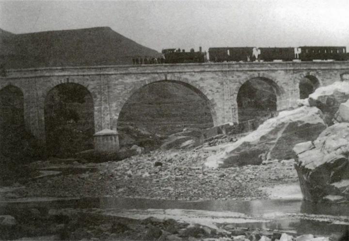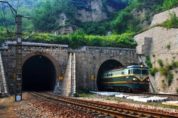 ▲ 上图:1904-1907年修筑的正太铁路石拱桥之一。 图/视觉中国;下图:正太铁路沿途风光,列车经过太行山中的岩会村。 摄影/王嵬