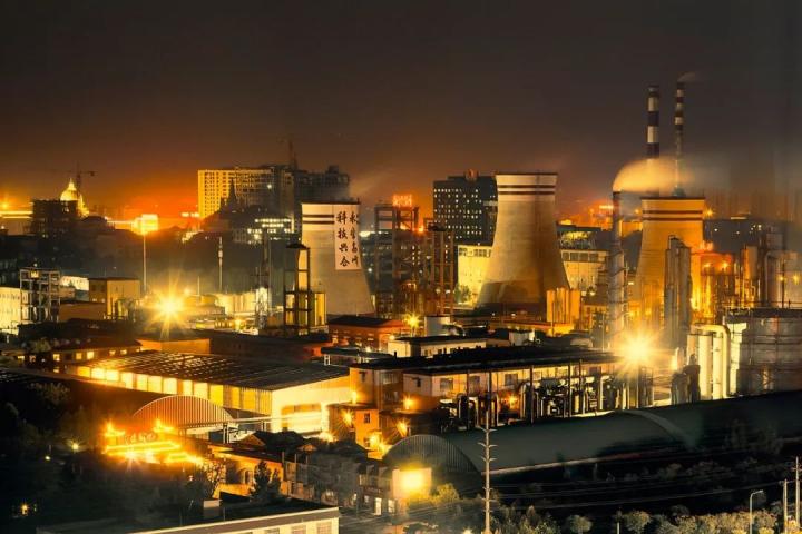 ▲ 灯火辉煌的石家庄新乐市化肥厂。摄影/赵志伟