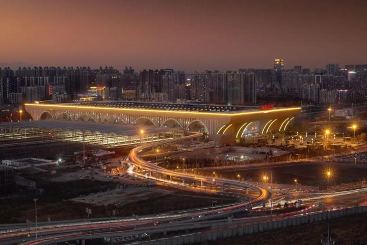 ▲ 夜幕下的石家庄站。 摄影/凉liang