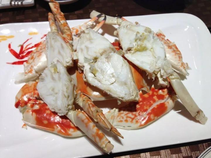 锈斑蟳,也叫红花蟹,生长于中国东南沿海一带,色彩艳丽,贝壳上花纹也十分漂亮。要说有什么缺点,大概就是它的味道算不上顶级。不过因为一道菜,红花蟹的身价也水涨船高。